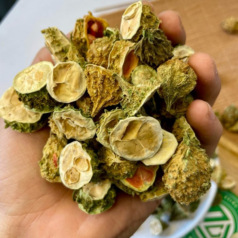 Khổ qua rừng khô là dược liệu thiên nhiên quý, được Thảo Dược Đức Thiện thu hái và sơ chế sạch, giữ nguyên hương thơm đặc trưng. Sản phẩm giúp thanh nhiệt, giải độc, hỗ trợ sức khỏe và phù hợp sử dụng hàng ngày. Khổ qua rừng loại 1 khô, thơm, sạch, không chứa chất bảo quản, an toàn cho mọi đối tượng.