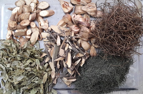 Sử dụng kết hợp 4 vị thuốc bao gồm 20g tầm xoong, 20g cây muối, 20g cây phèn đen, 20g cây nổ sâm. Mang tất cả đi sao vàng hạ thổ, sau đó rửa sạch rồi đun với 1.5 lít nước sắc uống, đun cạn đến khi còn 500ml và chia làm 3 lần uống trong ngày.