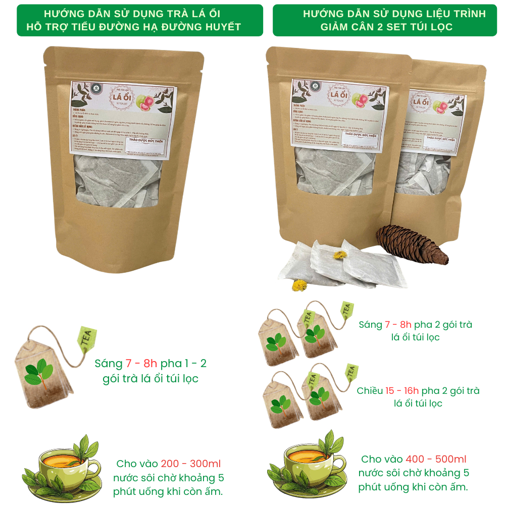 🌿 TRÀ LÁ ỔI TÚI LỌC ĐỨC THIỆN – HỖ TRỢ GIẢM CÂN, ỔN ĐỊNH ĐƯỜNG HUYẾT TỪ THIÊN NHIÊN 🌿