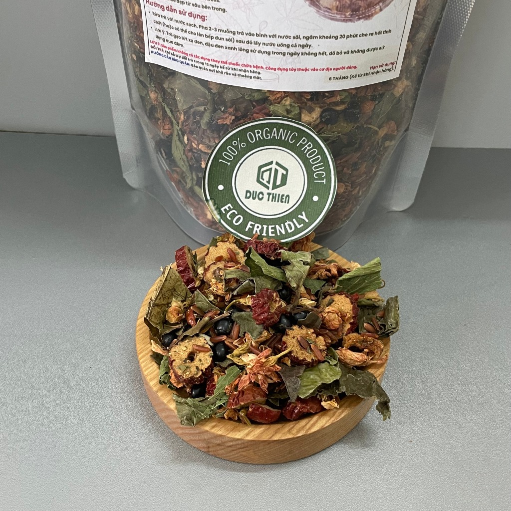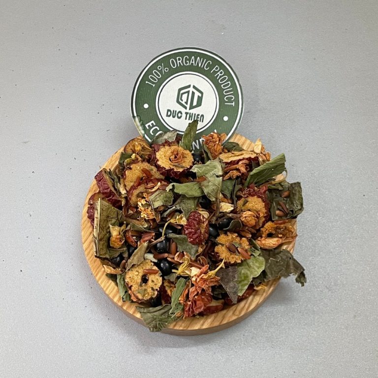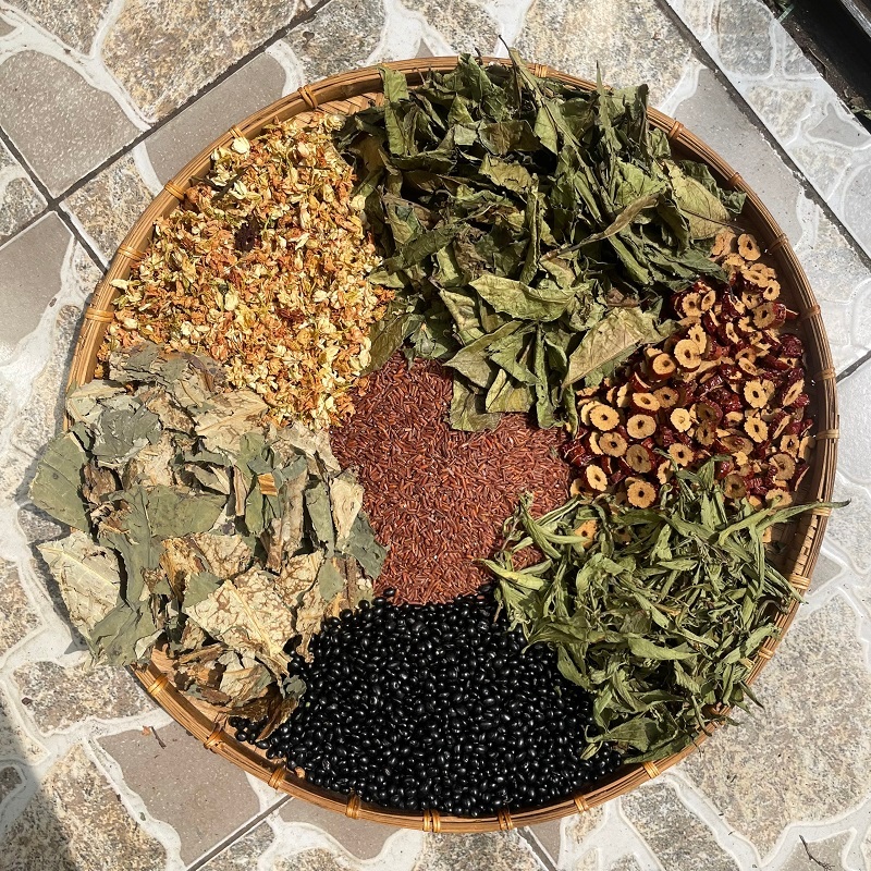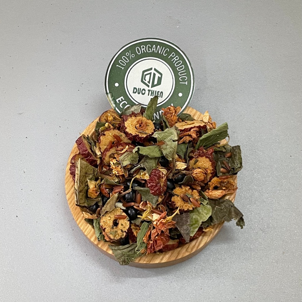 Trà được phối trộn từ những nguyên liệu sạch, sấy thủ công gồm: