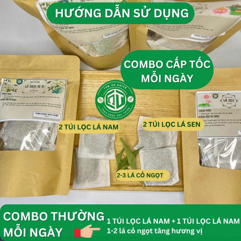 Không giống các phương pháp ép cân, combo này được thiết kế theo lộ trình sử dụng 2 gói trà túi lọc lá sen + 2 gói trà lá nam mỗi ngày, dùng liên tục trong vòng 30 ngày. Có thể chia làm 2 lần sáng – tối, hãm với 300ml nước sôi, để trong bình giữ nhiệt 15 phút rồi dùng dần.